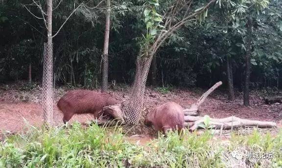 天太热,躺了两只鹿猪。