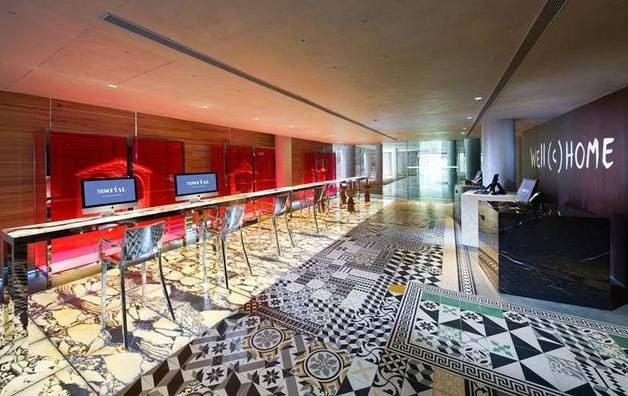 M Social 内外都有来自西班牙的怀旧风绘制瓷砖,酒店大堂的麻包袋凳子则仿佛呼应罗拔申码头的前身是货仓。