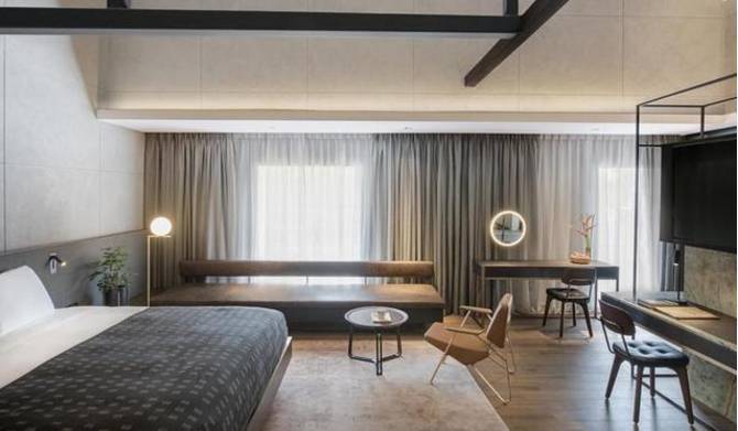 37 间客房有 30 间的设计独特不重复,并在触点和细节体现奢华感,好比用皮革包覆写字台,床边有 USB 和国际通用电插座,客房都挑高,展现舒适宽敞的空间感。
