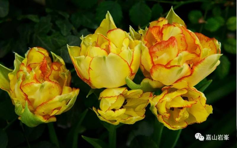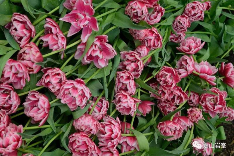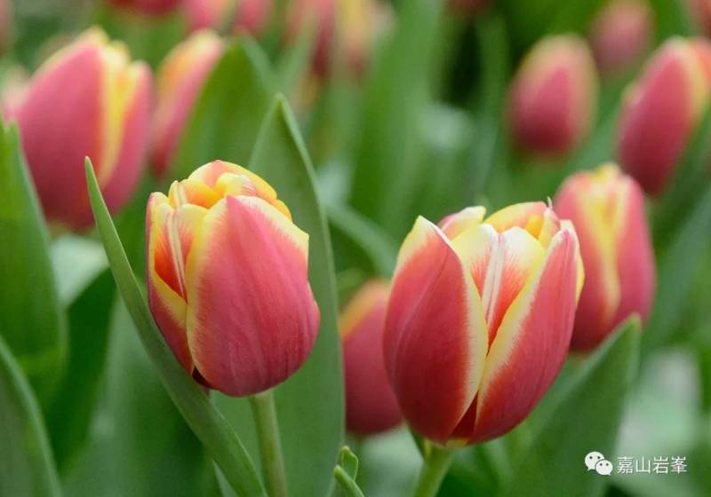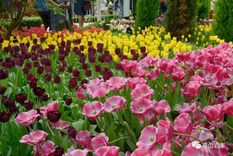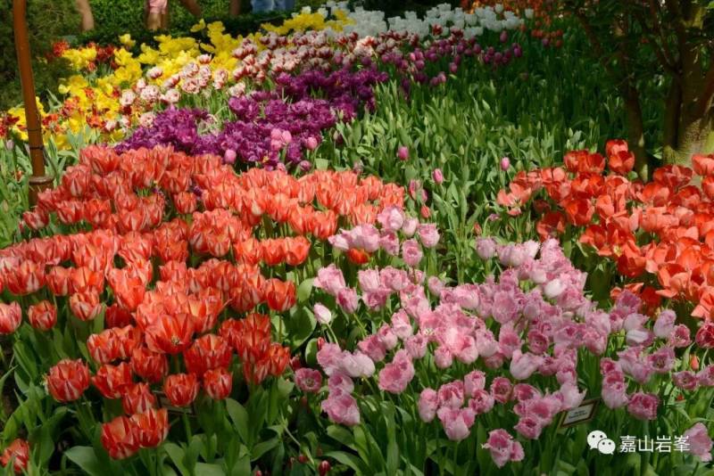 郁金香种类繁多,颜色各异。远观花圃,色彩斑斓。