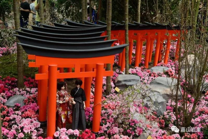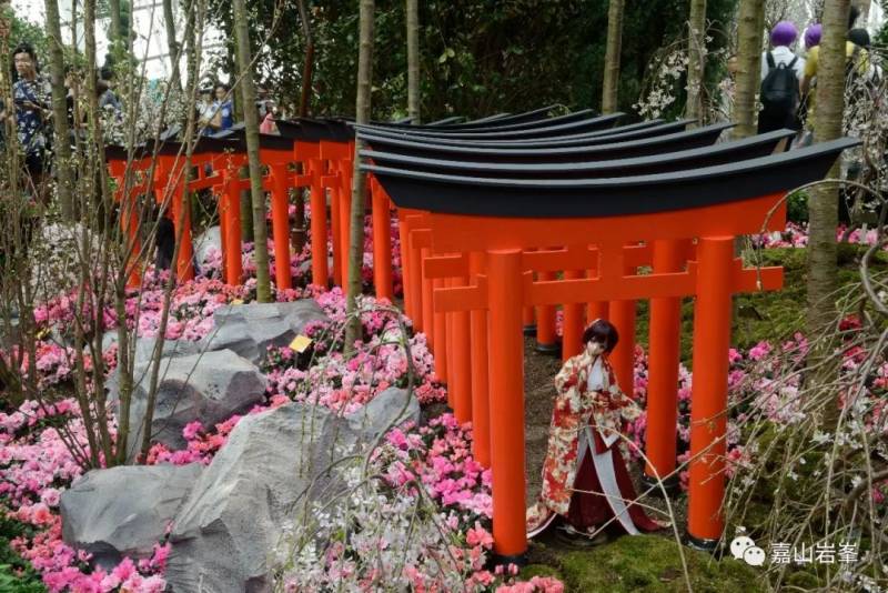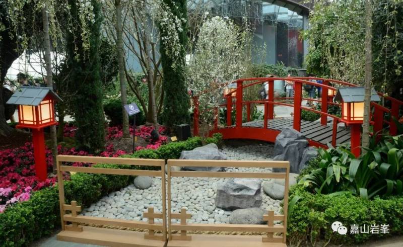 其实红色是日本园林中非常耀眼的跳色。这与中国的园林又有区别。中国园林中会避免使用如此鲜艳的颜色。