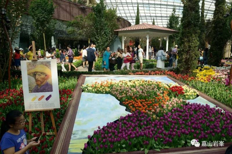 用郁金香花圃拼出梵高的名画,算是别出心裁。