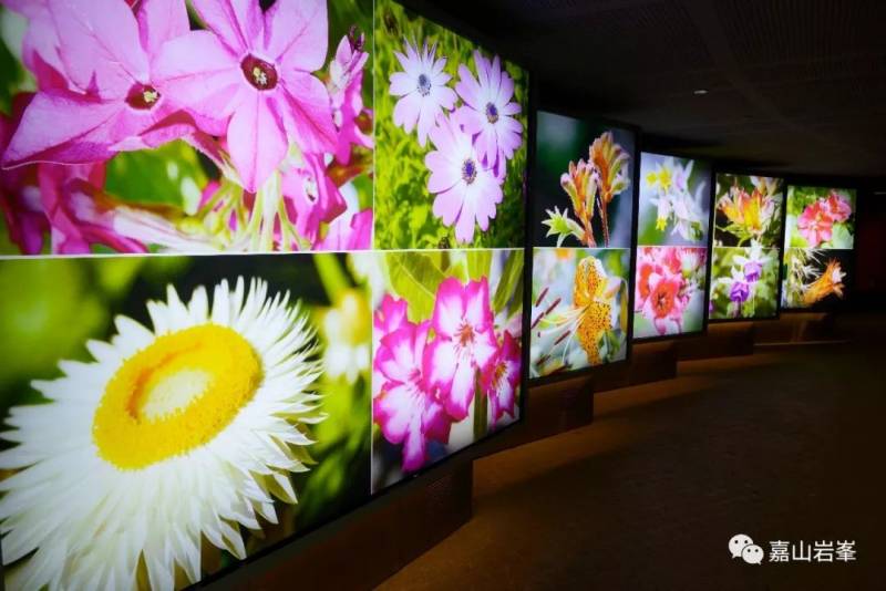 花穹入口的前方是一个狭窄的长廊。长廊的两门墙上布满了大幅花卉图片,把游客立刻就带入主题。