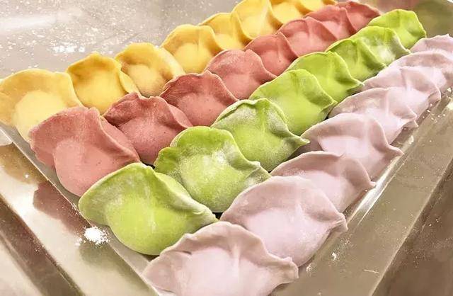 五彩水饺/白面馒头嗯,客户想要的五彩斑斓的黑我做不出来,但五彩斑斓的饺子我还是很擅长吃的!咳咳~这饺子皮是用蔬菜汁和的面,单吃皮可以吃到菜味。注意!饺子煮出来颜色会变浅,毕竟不是用色素染的嘛~