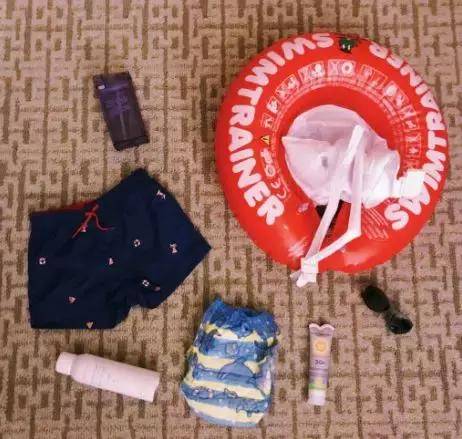 给桐宝准备的游泳用品。这里要说一下后来我们上去后救生员不允许我们给孩子用这种半圈泳圈,说是比较危险!买了又当摆设了。。。