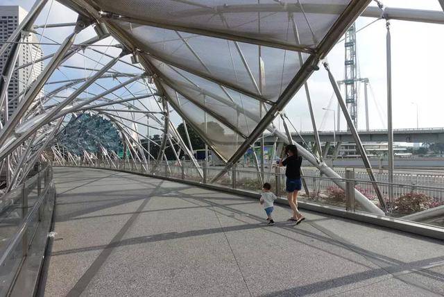狮城地标建筑,必打卡处。我们在酒店用完早餐后徒步前往鱼尾狮公园途经双螺旋桥,内设有站台、购物商店和饮食店供游人合照和休息,晚上19:30有灯光秀。