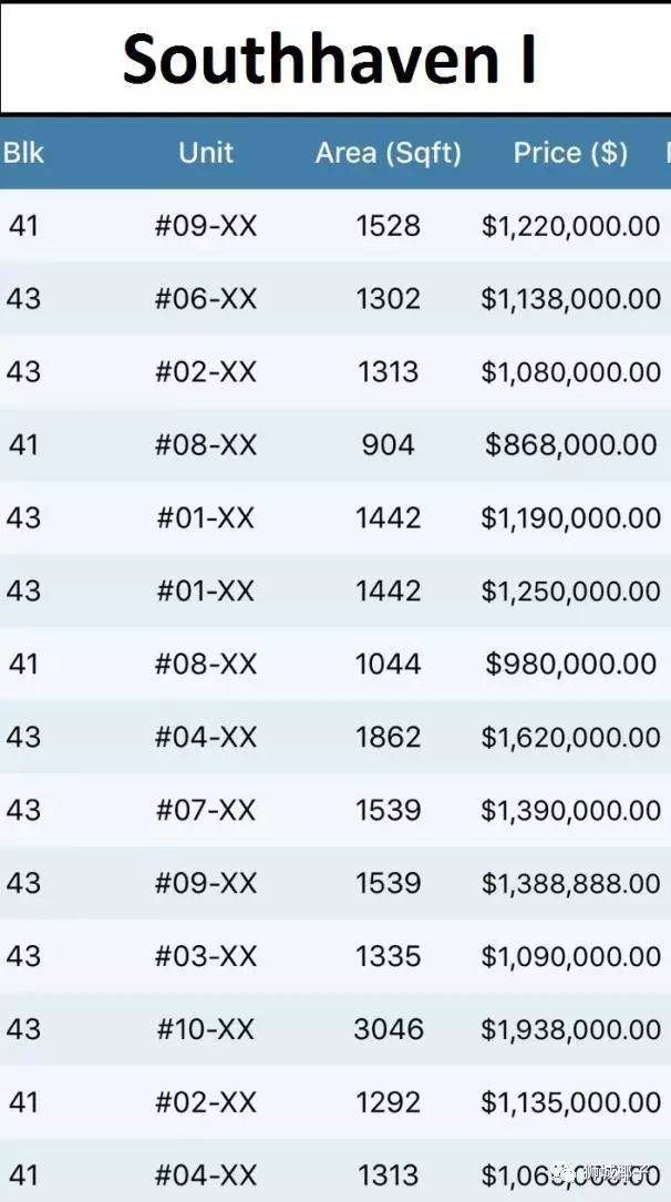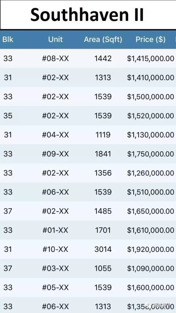 大家可以比较地契不同但性质类似的公寓的价格差距,以Southhaven I(99年地契)和Southhaven II(999年地契)作为比较对象。