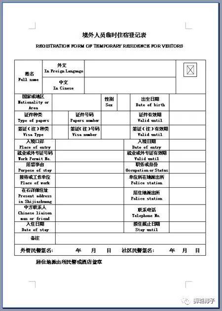 2.提交境外人员临时住宿登记单原件及复印件(本市宾旅馆或住宿地派出所出具)