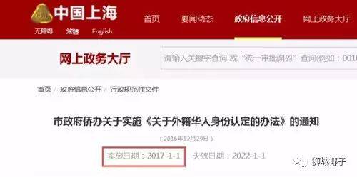 3、上海市人民政府侨务办公室对外籍华人身份进行认定