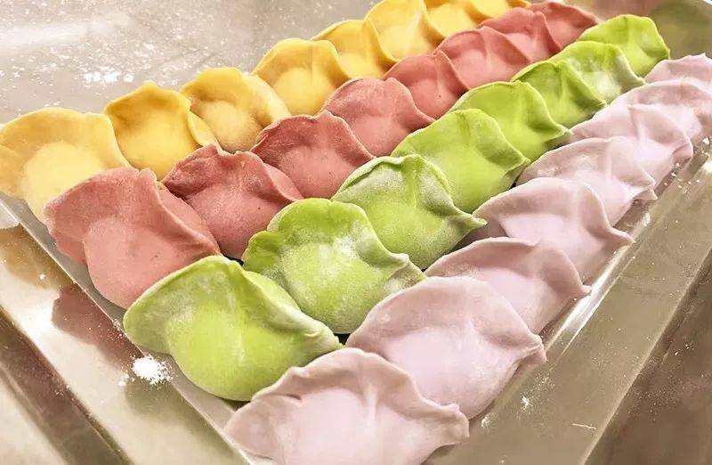 嗯,客户想要的五彩斑斓的黑我做不出来,但五彩斑斓的饺子我还是很擅长吃的!咳咳~这饺子皮是用蔬菜汁和的面,单吃皮可以吃到菜味。注意!饺子煮出来颜色会变浅,毕竟不是用色素染的嘛~