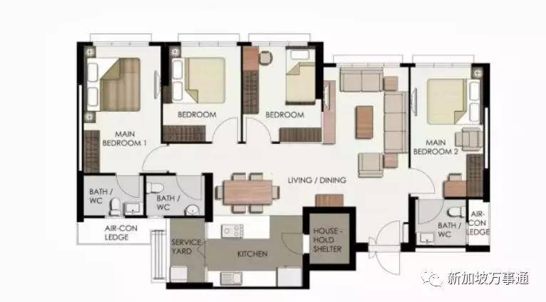 3-Gen公寓基本上是一个典型的5居室公寓的升级改造,另外还有一个主卧室和卫生间。最重要的是什么呢?是价格也并不昂贵。和父母一起住在三代同堂组屋中比买两套组屋便宜多了!