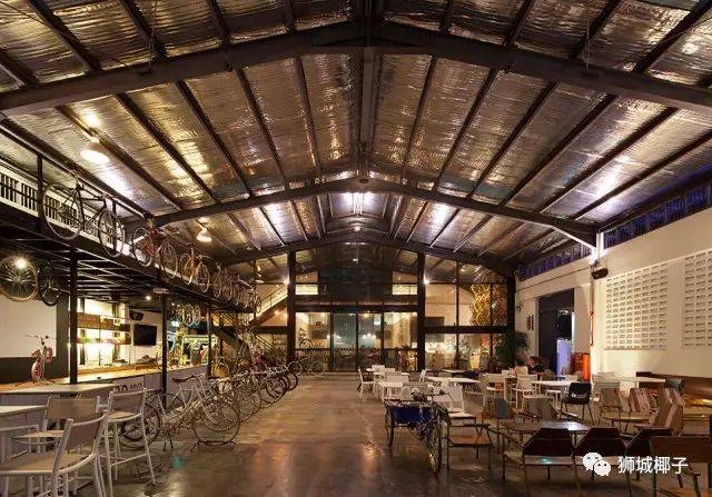 装修很有旧厂房感,百多平方米的厂房被玻璃隔开,外面继续自行车业务,里面是冷气十足的餐饮业务,每张餐桌上都有独特的自行车主题。