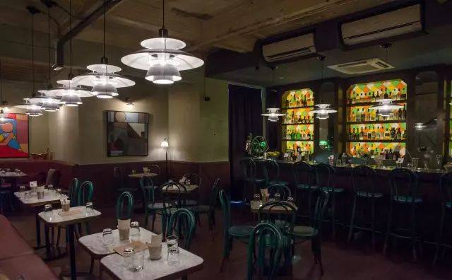 这家酒吧是根据一款经典Martini而命名。它开在了shophouse的二楼,上去会有一种穿越的感觉。昏暗的灯光搭配复古的彩色玻璃,还有墨绿色和深红色的室内装饰,浓浓的复古味。本店推荐:Sling it Black