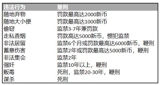 新加坡常见量刑标准