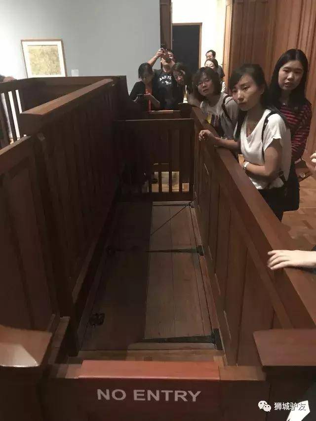 小伙伴们体会了一把被“关押”的感觉。为了防止囚犯自尽,这里厕所冲水的拉绳都设在牢房外。而上庭的时候,犯人只能从一条狭窄的甬道经由地下前往被告席。