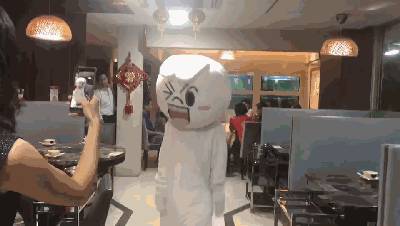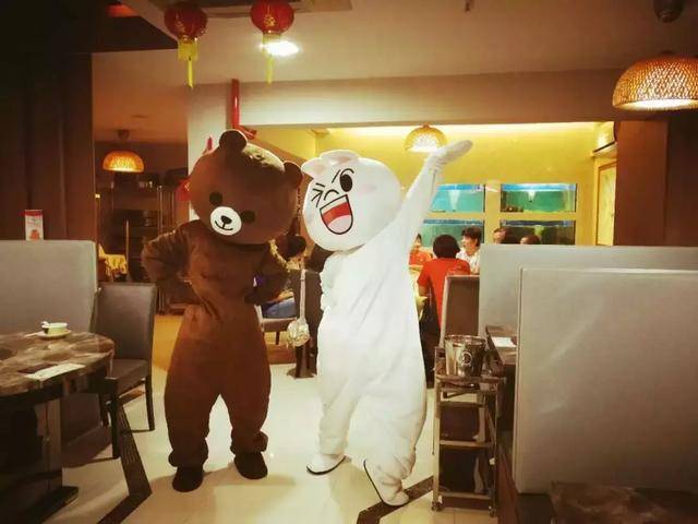 老板这么怪,店员们当然也不能落后呀,一个个穿着火遍日本的布朗尼熊和可妮兔的玩偶服,在店里又唱又跳。