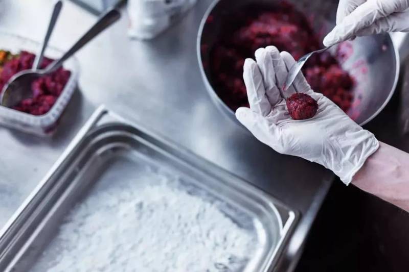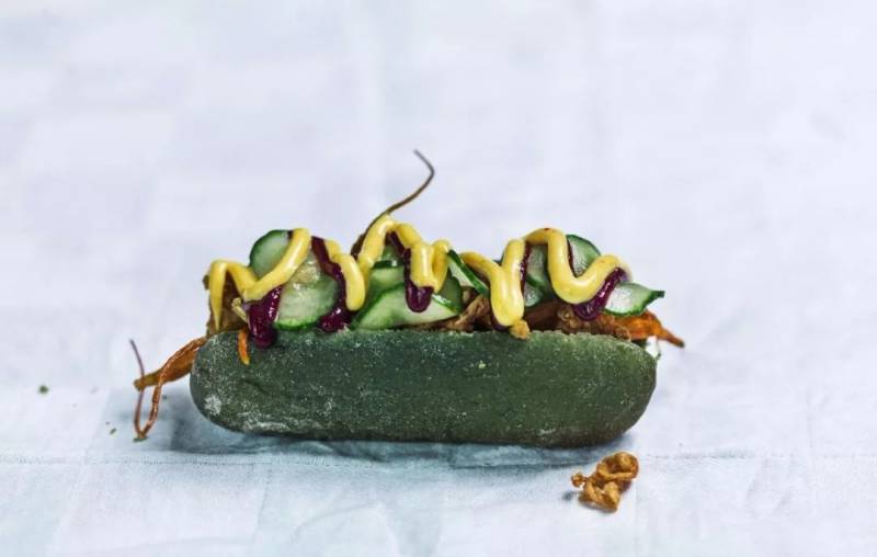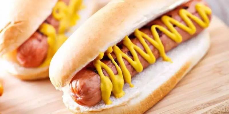有热狗、汉堡、沙拉、冰淇淋和肉丸