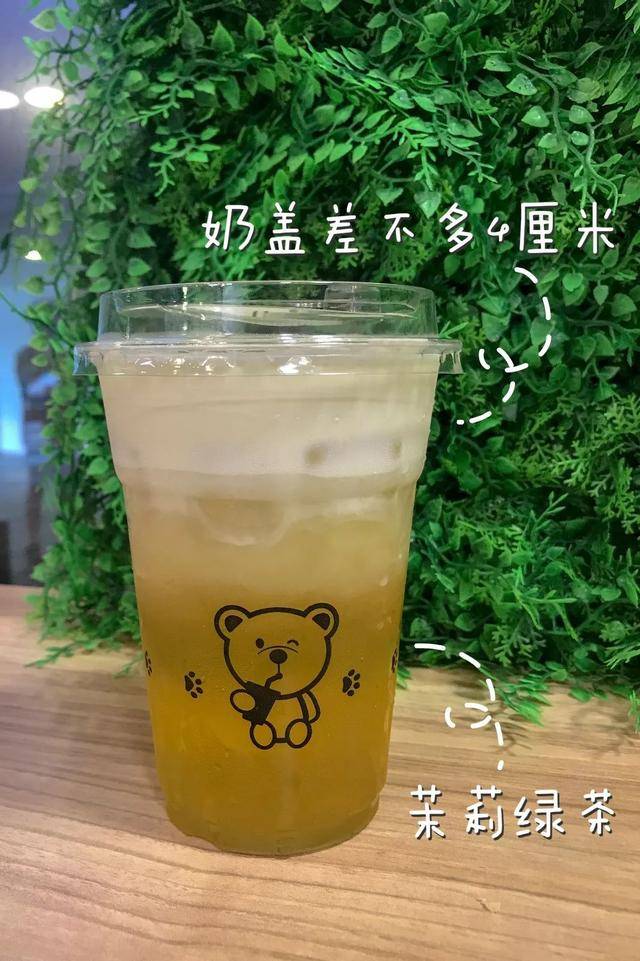 绿茶刚入口时略带涩但不苦,茶色偏金黄色。茉莉花味和奶盖结合后还有一点淡淡的香气,但是喝到最后最后口感会过涩。而且喝完没多久会超级的饿,估计茶的浓度有点过高。