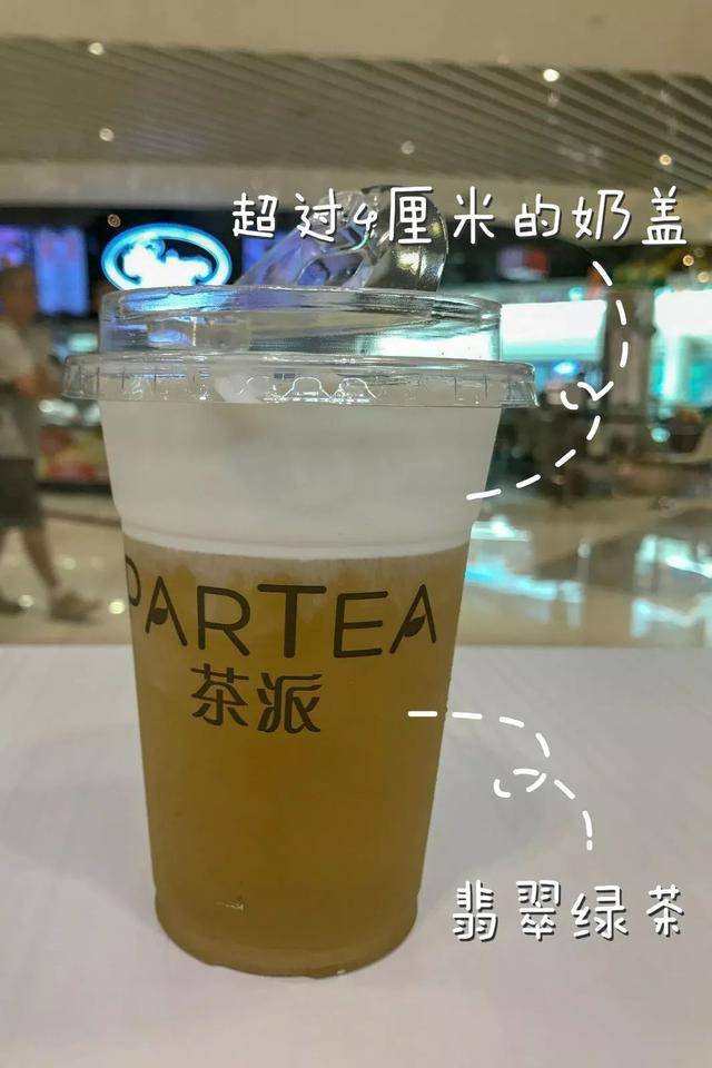 点了一杯最基本的翡翠绿茶加奶盖,奶盖足足有快5厘米厚,几乎占了这杯茶快1/3。