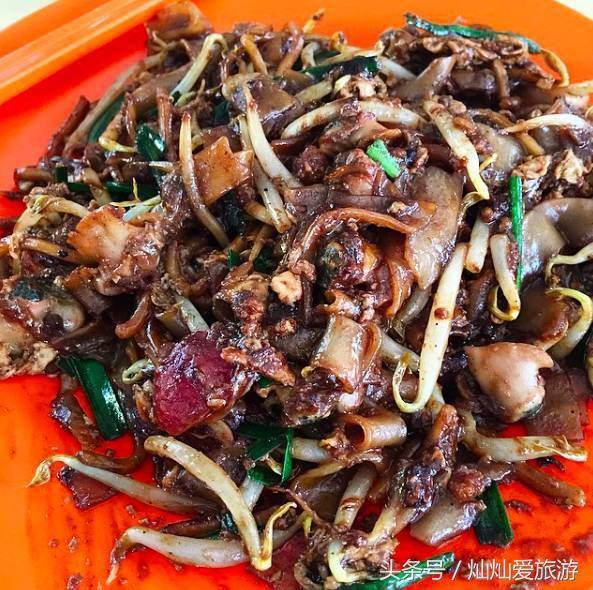 新加坡本地人很喜欢的炒稞条,是将河粉、鸡蛋、老抽、虾酱,辣椒酱一起炒,有时会加中国香肠和血蚶,略带甜味。