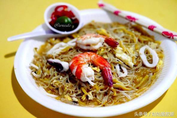 这是新加坡小吃界的一个传奇摊位,位于老机场路美食中心。炒面中添加了肉汁所以不会很干,鱿鱼的味道也很好,是家清爽的炒面。