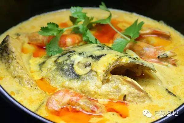 咖喱鱼头通常选用一大块石斑鱼头或红鲷鱼头为主料,先用姜葱和蒜头爆香,再用浓稠的咖喱酱汁和各种蔬菜焖煮鱼头。鲜嫩的鱼头加上香辣的咖喱汤,辣中带甜、香味浓郁、辛辣够劲,特别下饭。