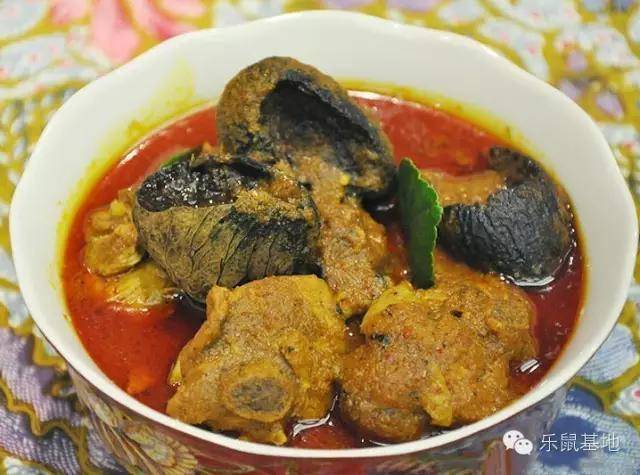 也是娘惹菜经典代表作之一。黑果(buah keluak)是一种带有坚硬外壳和辛辣内瓤的果实。这道菜的制作过程颇为讲究,酱料要花半天时间准备,然后将黑果果肉和香料拌在一起,再把搅拌好的果肉放回果壳里去,最后将黑果、鸡肉或者猪肉以及香料一起焖半天时间即可。吃的时候搭配白米饭,再加上虾酱炒蛋(chincalok egg)和空心菜(sambal kangkong),香气四溢。