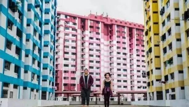 从天空视角看起来呢~十分怀疑给组屋设计外观的人是不是在飞机上画的设计图,绘著五彩缤纷儿童区的徽章~