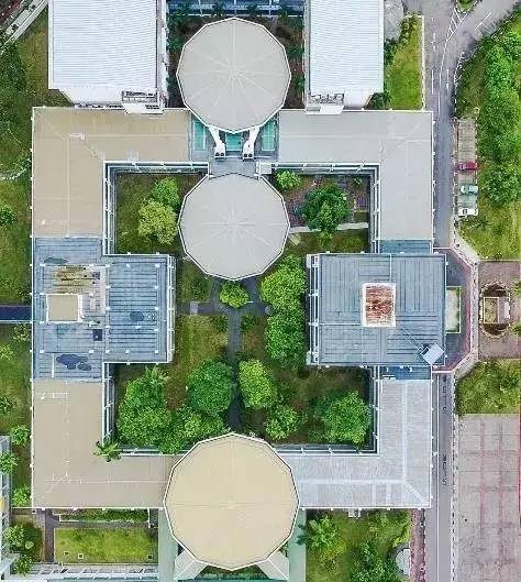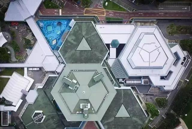 工艺教育学院(ITE College Central),从天空上看来,与其说是学校,更像是做航空研究的机构呢,两个飞机放在楼顶上,看着就高大上。