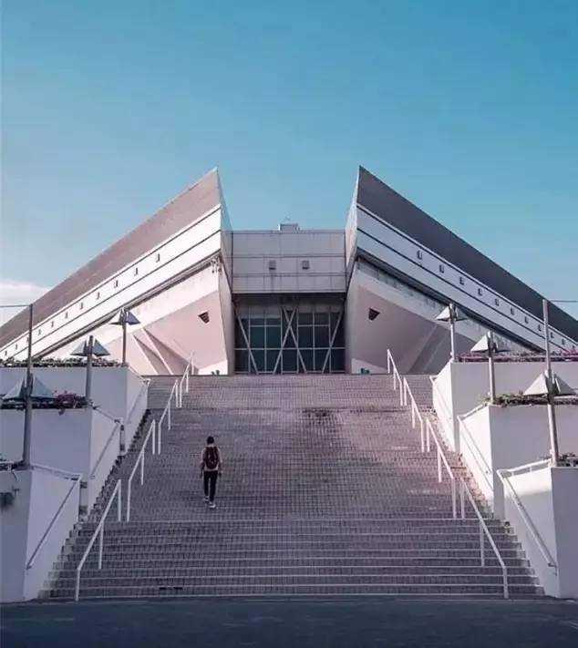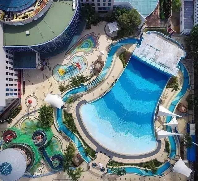 天空上看游泳馆,好一幅色彩鲜艳的儿童画~