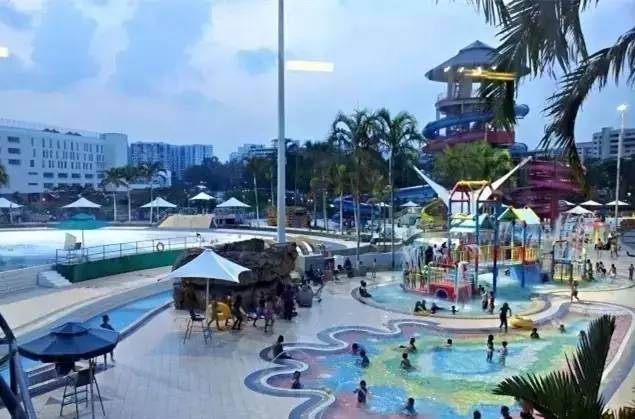 地面上的Jurong East Swimming Complex裕廊东游泳馆:色彩鲜艳,各种小屁孩在池子里面玩。
