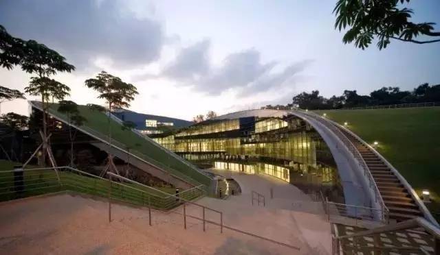 地面上的NTU School of Art, Design and Media building南洋理工大学艺术设计媒体系大楼,看起来富丽堂皇非常现代化~