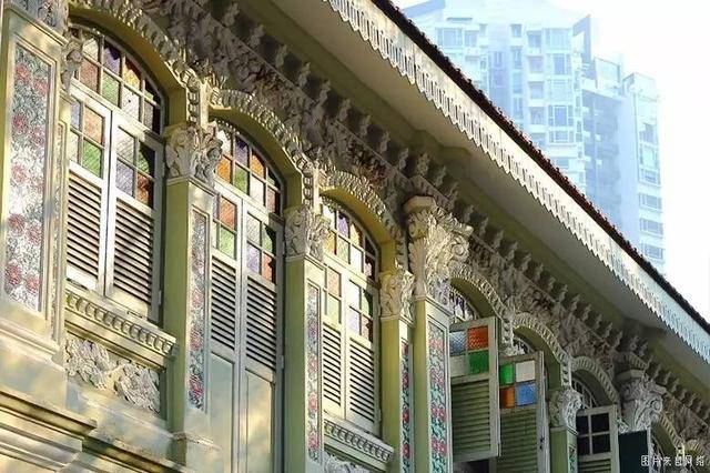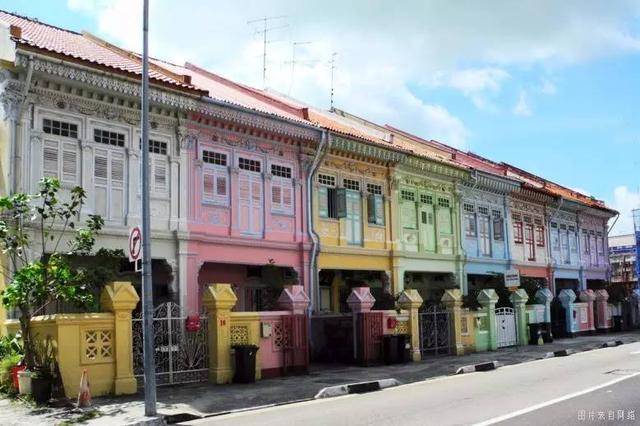 沿着如切路(Joo Chiat Road)悠闲地漫步,你可以看到色彩缤纷的土生华人排屋~这些五颜六色的两层楼,一楼开店,二楼可自住,所以又被称作店屋~房屋大都装饰有龙、鸟和螃蟹等形象,还有华丽丽的欧洲进口的艳丽瓷砖。