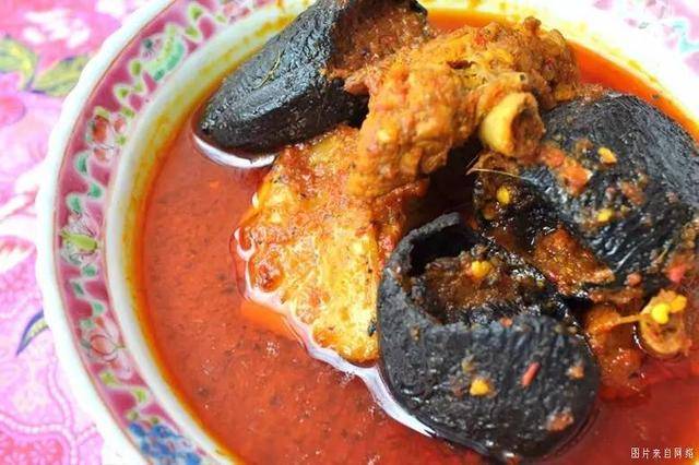 黑果(下图里黑色的就是)自身有很大毒性,土生华人却将它制成香料、放在菜里,制作出汇聚红酒、雪茄和黑橄榄芬芳的极品娘惹料理。