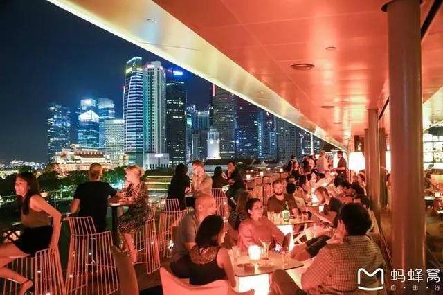 它位于新加坡浮尔顿海湾酒店(Fullerton Bay Hotel)顶层,这家酒店建于滨海湾中,三面环海,所以,这家酒吧就是看滨海湾夜景的不二选择!