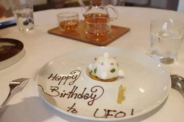 之前预定的时候说了是庆生,就在甜品盘上写上了Happy birthday to UFO!开心