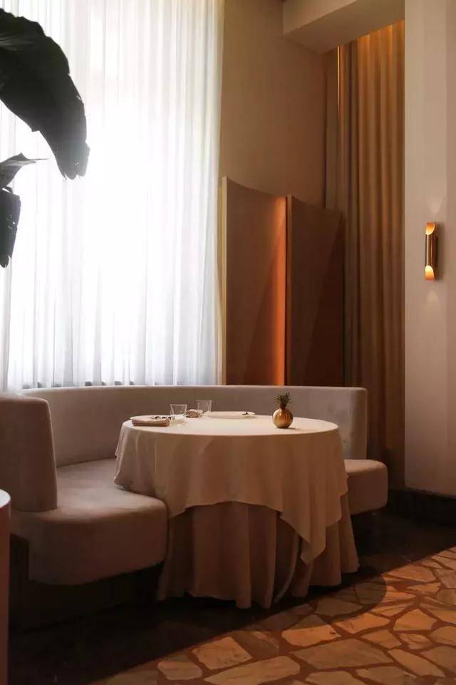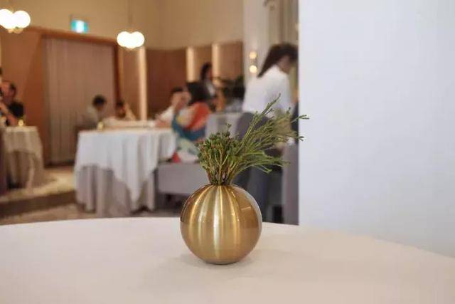 大门被拉开,我们的奇妙感官之旅正式开始。热情的侍应生带我们入座。由浅灰、浅粉和金色构成主色调的餐厅,完全的满足了我的少女心,忍不住开始拍了起来。