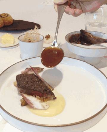 Part 1 BBQ Pigeon Breast 烧烤鸽胸肉 |五分熟的鸽子肉,切开还是略带粉红,肉类搭配土豆泥永远是最合适的。肉底下铺着烤的酥脆的牛肝菇。鸽子高汤做的酱汁一定是这道菜的精华。