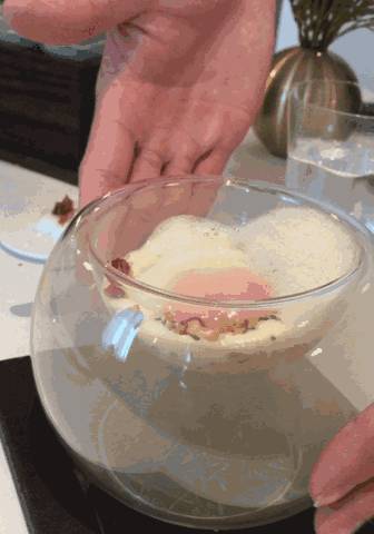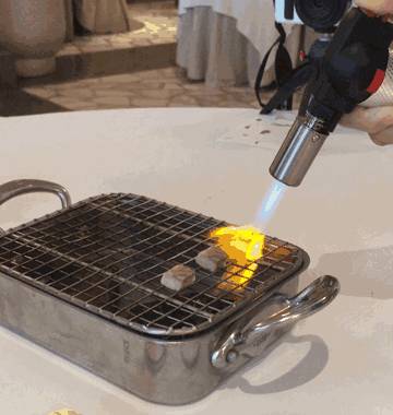 主厨担心你还想闻迷迭香的味道,贴心的在玻璃碗下放了还在冒烟的迷迭香,Magic~