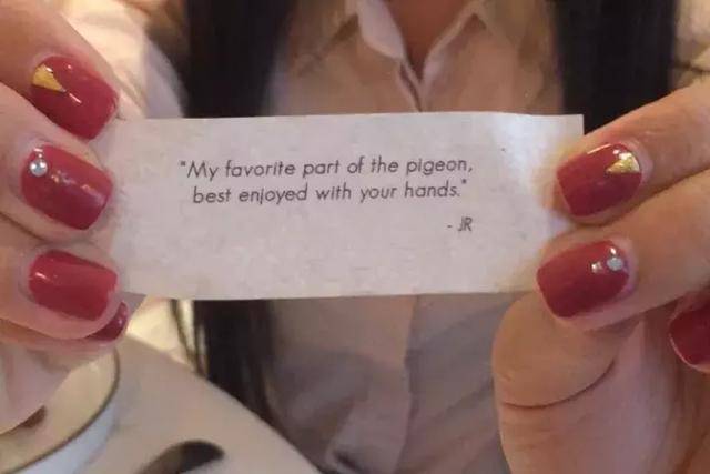 Part 2 Confit Leg 油封鸽子腿 | 油封是法餐的经典做法,这里主厨还留了小纸条在腿骨上,嘱咐著吃之前一定要打开看。