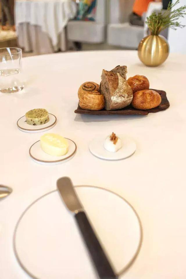 因为点了素食8道式,所以最左边的是海苔素版黄油,中间的是手工黄油 ,最右边的是略腻的新鲜猪油。