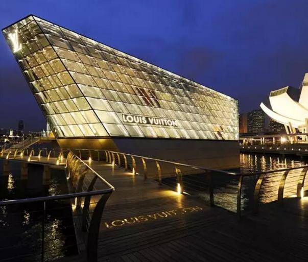 位于新加坡滨海湾水晶阁岛上,如帆船般重叠交错的现代建筑,就是LV规模最大的旗舰店之一。就算不购物,来吹一吹海风也是好的。