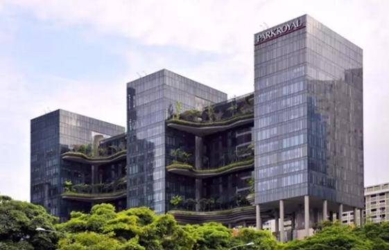新加坡建筑设计工作室WOHA凭借其创新的花园酒店概念及多样化节能设计,在酒店上建造了一个皇家公园,创造了一个15000㎡、楼高四层的绿色植物覆蓋面,大约是该建筑面积的两倍之多。设计师在阳台和露台上增加了植被量,使每位客人在房间的窗外有一个花园。这些绿色空间的结构都是仿照自然的地形建造的,乍一看,就像是丘陵地貌,弯弯曲曲、层层叠叠的成为建筑的特色部分。建筑还被其它细节点缀著,有葡萄架、水池和石洞;而镜面的墙和天花板能够反射光线,使室内更透亮。