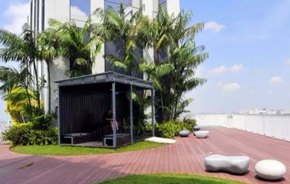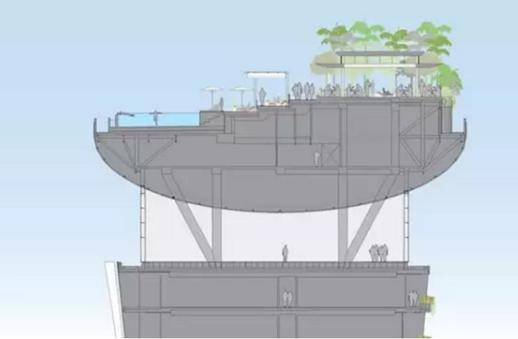 这里还拥有全球最大型的公共悬臂,有观景台、园林、餐厅、酒吧以及一个长150米的无边泳池。花园内还种植有250棵树木,其中较大的树木由钢筋和混凝土固定,以防被大风刮倒。