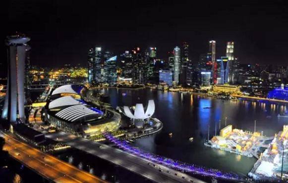 摩天轮下方是F1赛道。F1城市公路赛在全球有两个城市,新加坡是其中之一,另一个在摩纳哥。