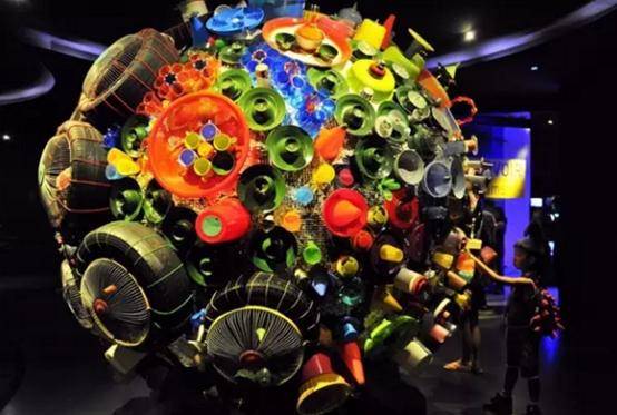 登上摩天轮之前,必先经过一系列参观廊道。这个由众多生活物品拼凑起来的球体,很有意思。