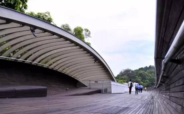 横跨Henderson Rd,连接花柏山公园(Mount Faber Park)和直落布兰雅山公园(Telok Blangah Hill Park),有着新加坡最高(海拔77.88米)步行桥的盛誉。桥全长274米,最高点离地36米。8米宽的桥身犹如后浪推前浪,形成4个波峰和3个波谷,其波浪状的设计给人以视觉上的冲击,并于2009年获得了新加坡总统设计奖。桥身坡度很缓,无障碍设计,木制防滑,平整无阶梯,方便老人和坐轮椅者。
