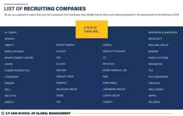 SP Jain 全球管理学院实习与就业合作企业部分名录