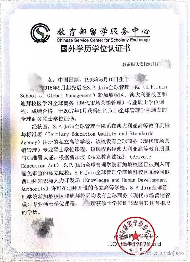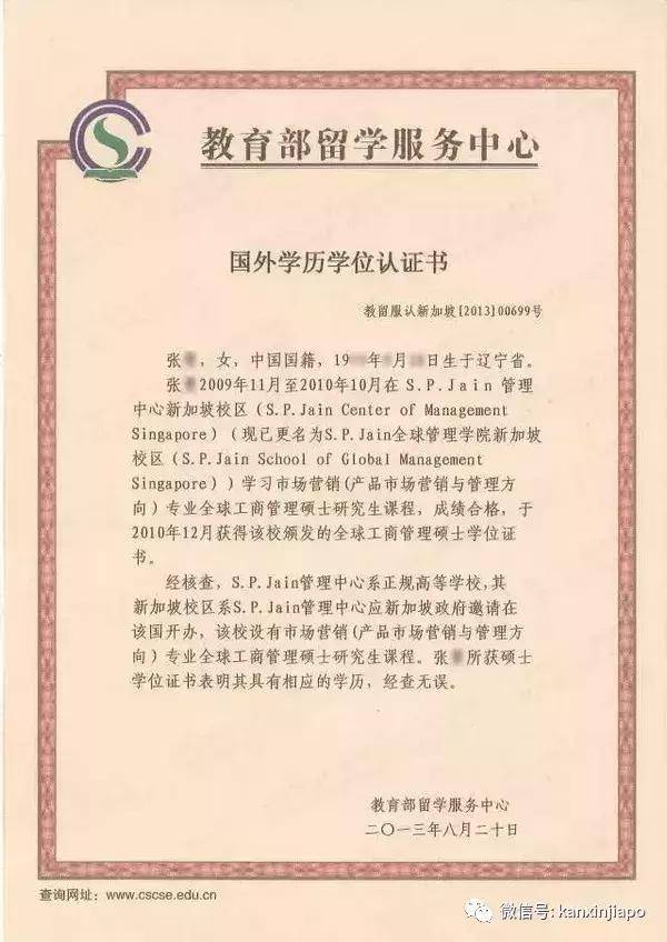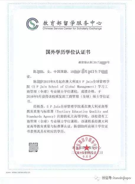 SP Jain 全球管理学院历年的中国教育部海外学历认证书