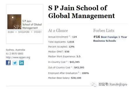 Forbes 福布斯2017年最佳1年制国际MBA商学院排名 SP Jain第16名